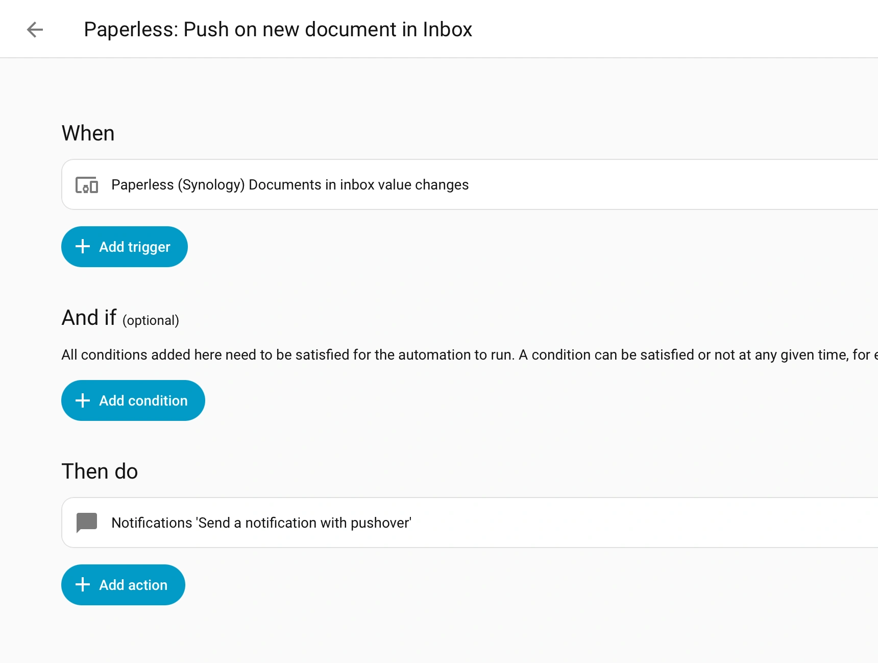 - Integrates with Home Assistant, so I can get a push notification if there's a new document to review