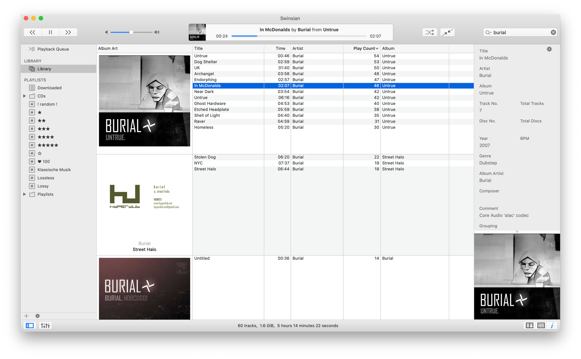 - Swinsian, a bit of an odd interface with these Next / Previous buttons that always put me off