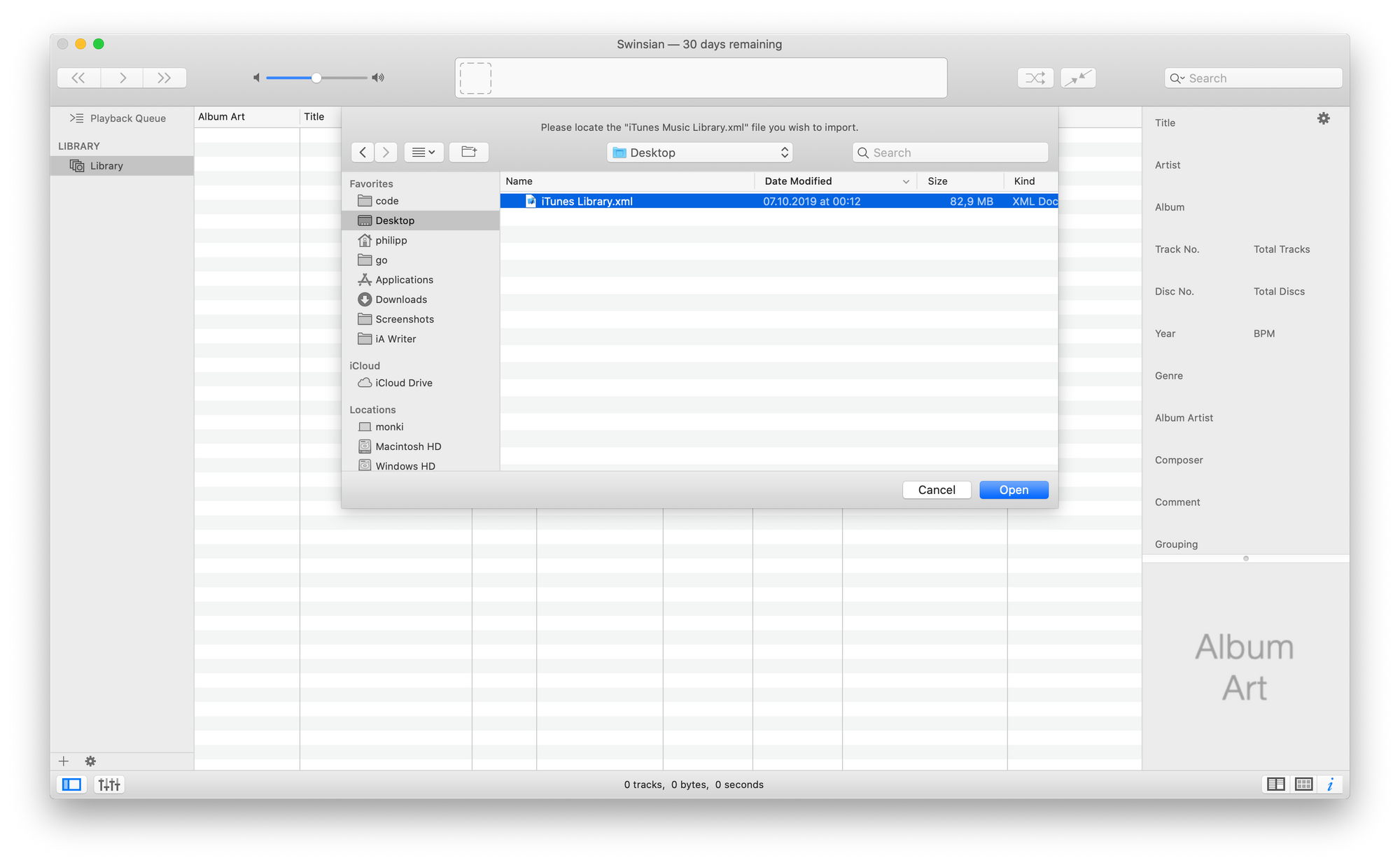 The only really promising one of these was Swinsian and I'm glad I did gave it another go. While it has some odd corners that don't look like a proper Mac app it's very fast and imported my 80MB iTunes library file with 900GB worth of tracks in a couple of minutes. Fetching the album art took a bit longer but that's understandable. I was briefly worried that it's not actively developed any more as the last Tweet on their account was from 2011 but then I saw the public changelog which was just updated a few days ago to support Apple's new Music.app.