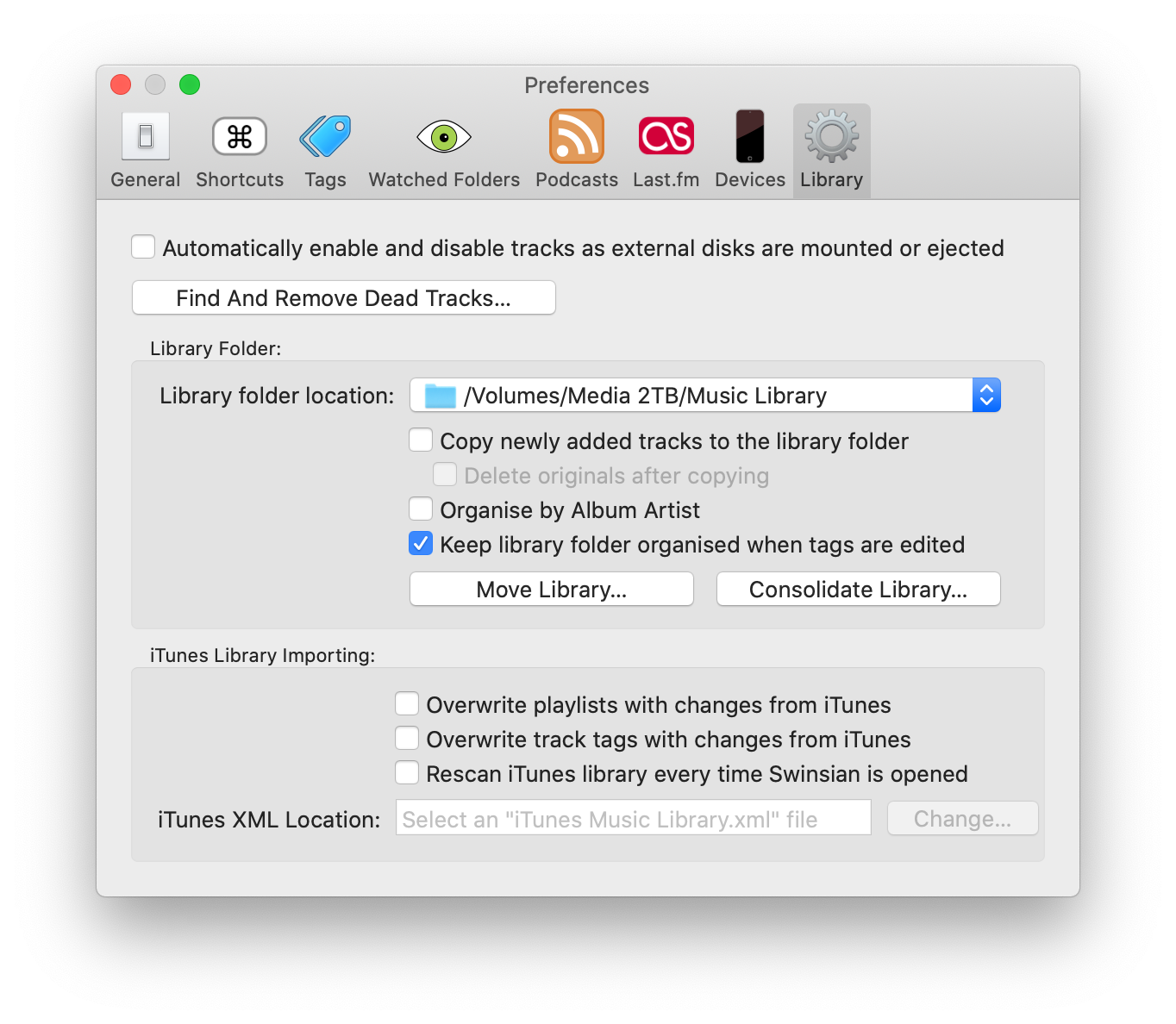 - Imports iTunes library file (The .xml) and keeps all play counts and playlists!