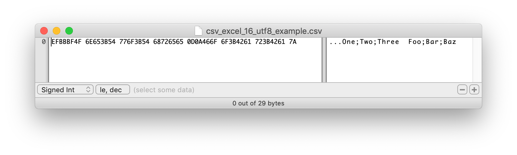 I received a report as an Excel (.xlsx) file that I had to import into our system. First step is usually to convert it to a CSV file and feed it into our importer—a service written in Go. The Go libraries for Excel files are not very nice to say the least so CSV is the way to go. I converted it by using Microsoft Excel for Mac. After running the import I saw that it was silently discarding the first column of the imported file.