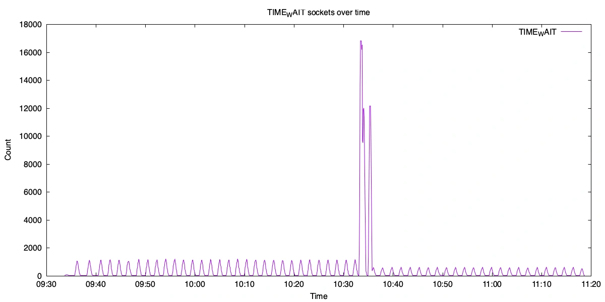 set title 'TIME_WAIT sockets over time';