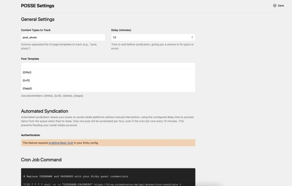 Kirby plugin: POSSE - Syndicate posts to other platforms.