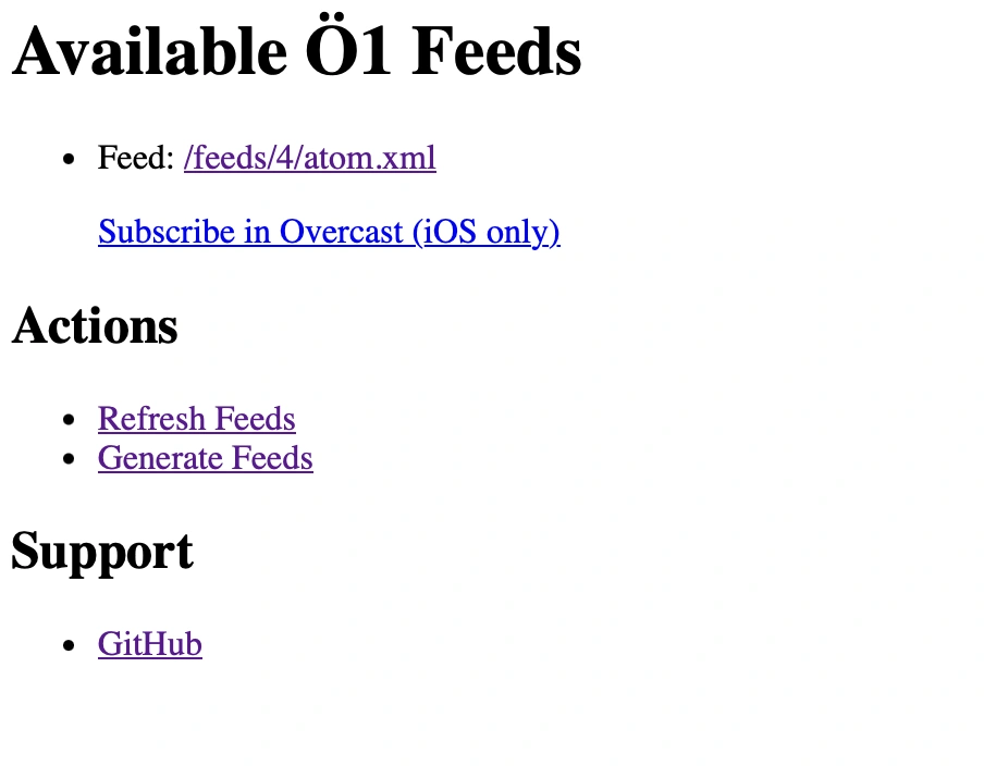 The basic idea was to use an API of a public Austrian broadcaster, filter for the episodes I want to listen to and then build a simple podcast feed that I then can subscribe to in my podcast player of choice, Overcast.