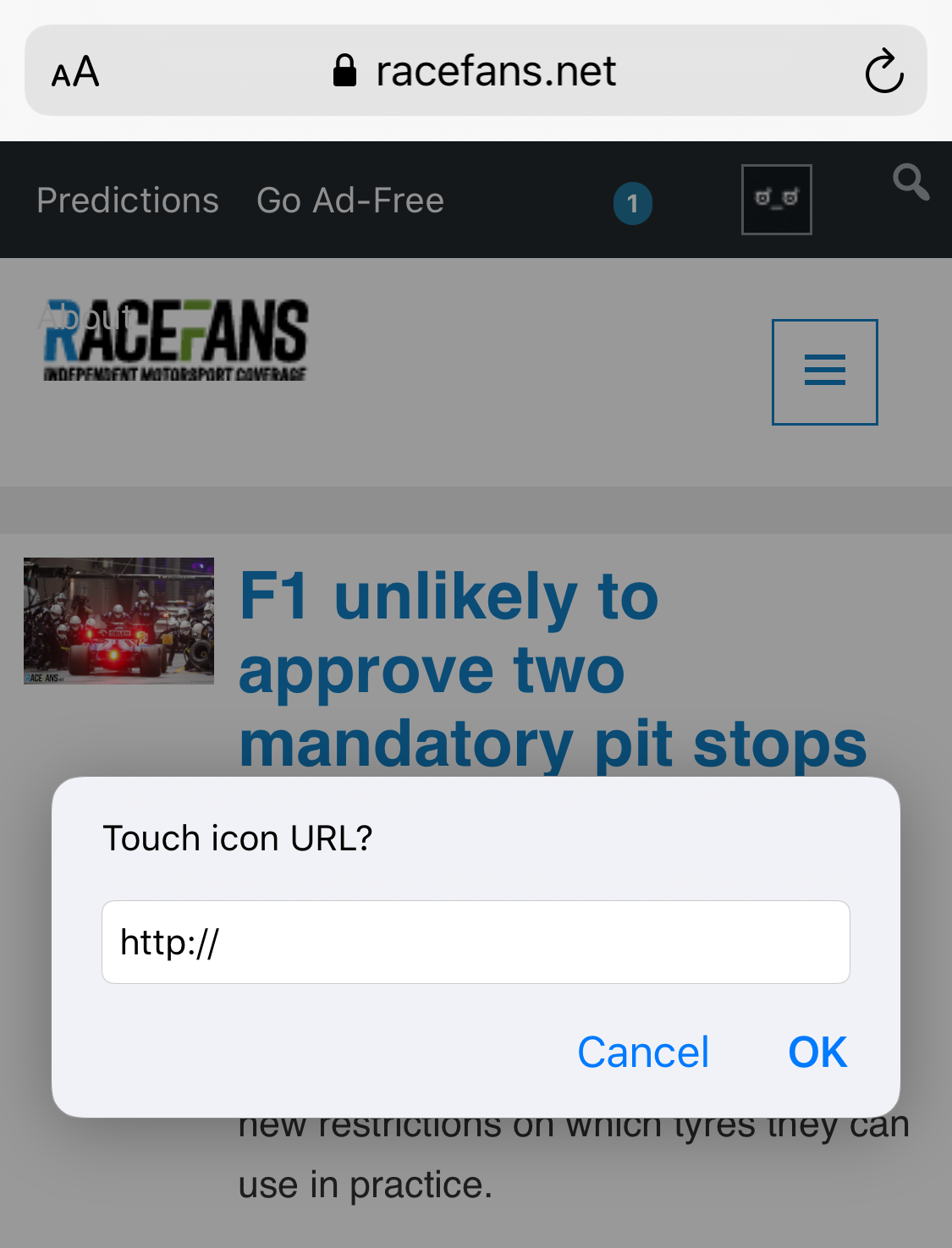 This will bring up a dialogue to prompt for the URL of the icon you wish to use – so make sure your icon is online somewhere. Clicking OK will seemingly do nothing, but what’s actually happened is that the LINK element has been set and the script has finished. Just go ahead and add the site, and your new icon should be used.