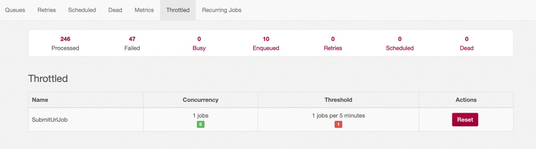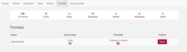 Since last time I've mostly worked on building the scheduling and archiving feature with Sidekiq and finding a good strategy to implement the rate limiting. The archive.org endpoint has a very strict rate limiting and I'm trying to be a good platform citizen by minimizing the requests to the Internet Archive.